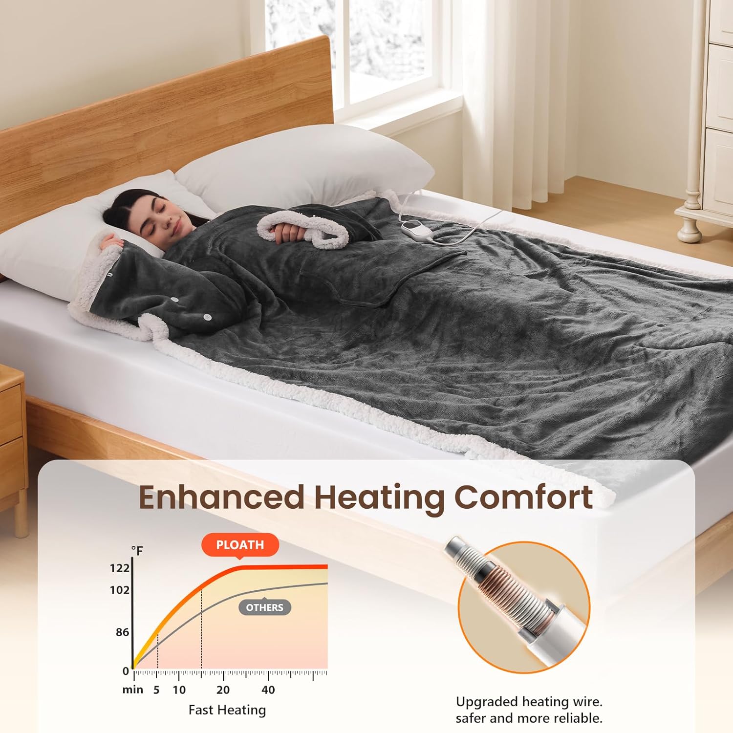 Unlike standard blankets, this heated shawl features built-in heating elements that provide adjustable warmth, making it perfect for chilly nights. Its wearable design, complete with open sleeves and a foot pocket, ensures comfort and mobility without the restrictions of traditional blankets.